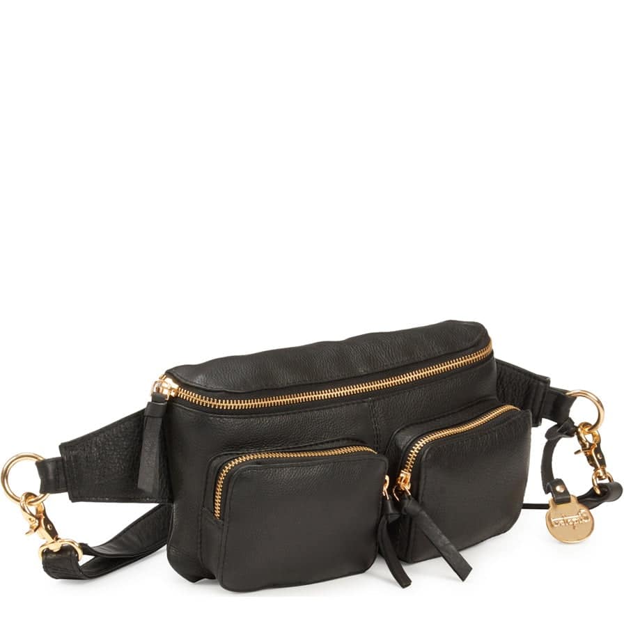 BEMÆRK: 2. sortering. Style Nile i sort læder m. lynlåse, ringe & karabiner i guld. Suveræn skulder,- crossbody- & bumbagtaske