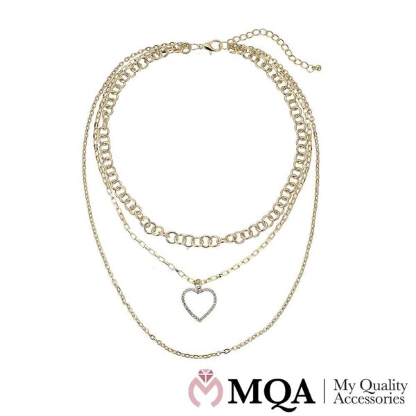 / Halskæde, dobbelt, guldfarvet, romantisk hjerte vedhæng, justerbar