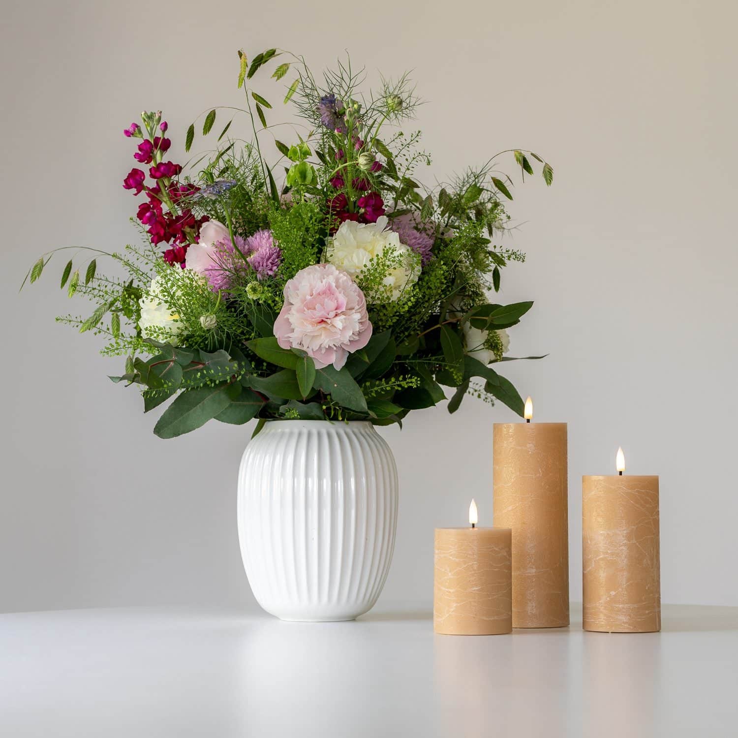/ Luna LED bloklys Ø7,5 X 10-15-20cm 3stk. Mix selv farver