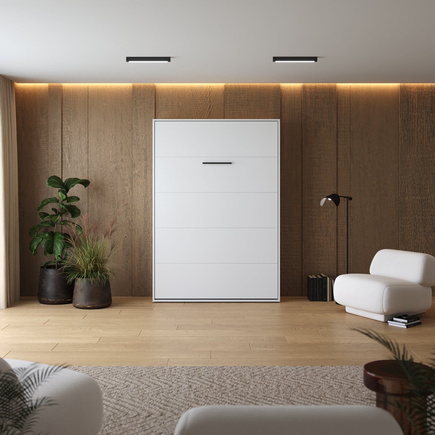 M1 skabsseng, høj model 140x200cm – farve Skab: Eg Sonoma, Front: Hvid Højglans