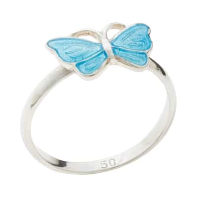 Sølvring med blå Sommerfugl